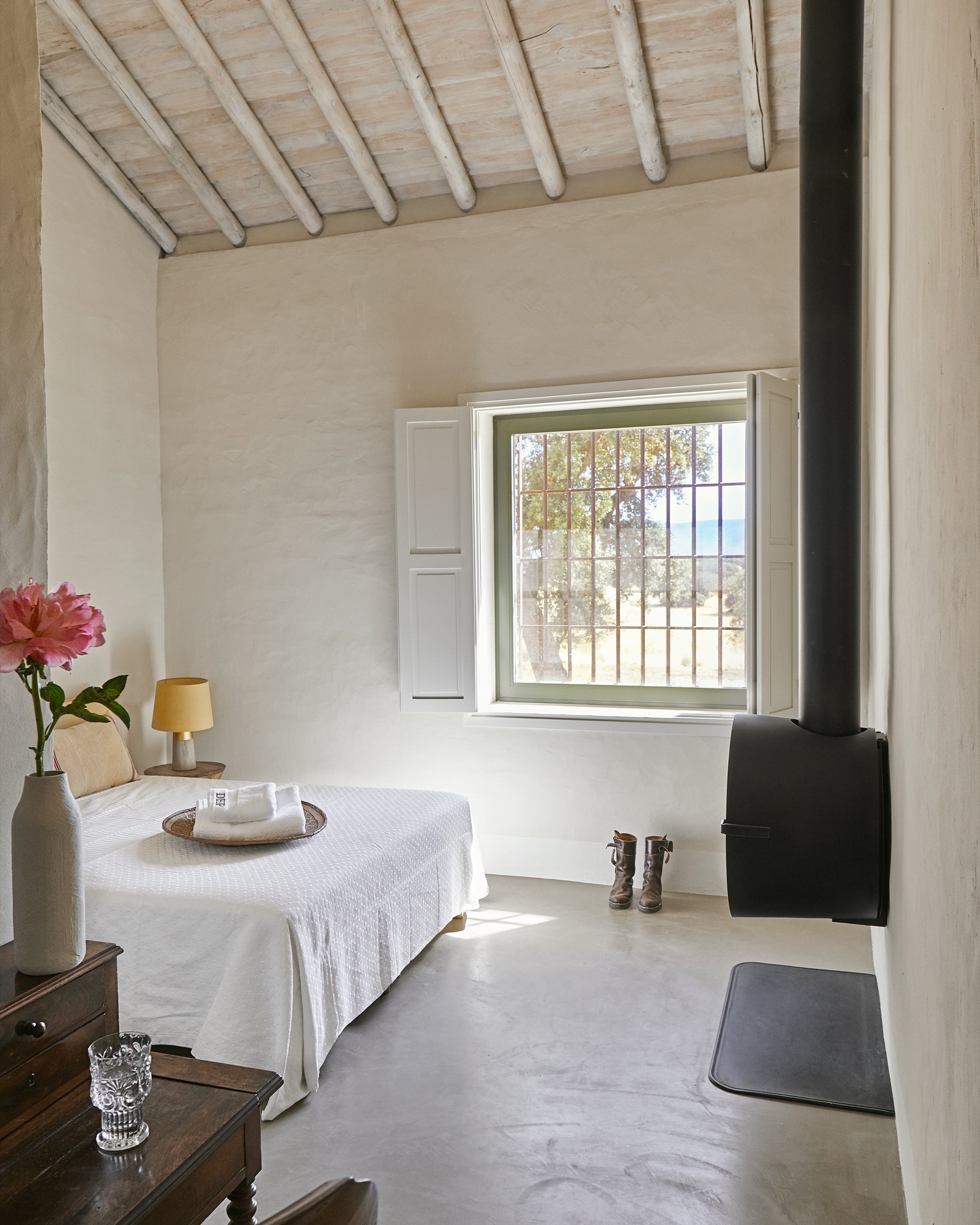 Construimos una casa con piedra del lugar, siguiendo las formas de la arquitectura extremeña, pero abierta al paisaje, al cielo, al presente. Grandes ventanales, líneas limpias, distribución contemporánea. Queríamos que la casa respirara con el entorno. Y lo conseguimos. Cada rincón de Dehesa Paraíso invita a bajar el ritmo, a mirar hacia dentro, a estar presente.